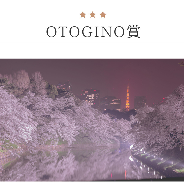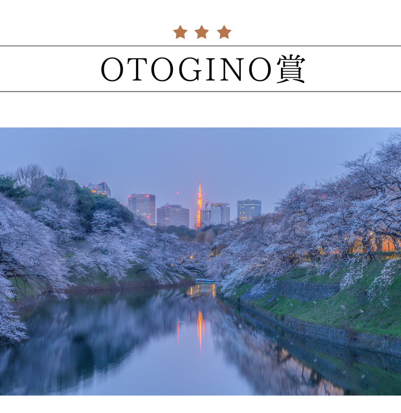 OTOGINO賞に選ばれたのは、皇居のほとりを舞台にした「夜明け前の千鳥ヶ淵」(撮影者 永井秀和さん)。明け方の千鳥ヶ淵の水面に映る桜と東京タワーが美しい、幻想的な瞬間を捉えた作品です。
