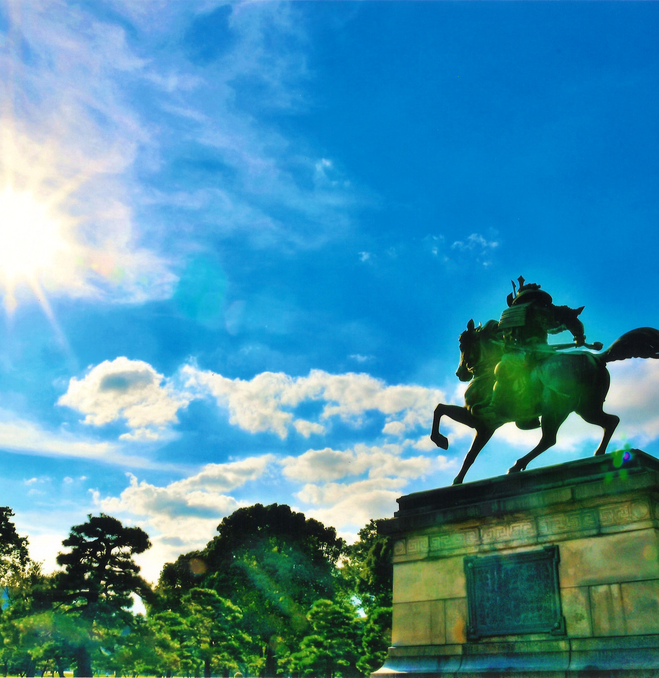 この度のOTOGINO賞は、皇居外苑の楠木正成像を映した「天駆ける」(撮影者 間瀬幾雄さん)。馬に乗った楠木正成の像を後方から収めたことで、大空を単騎で駆ける様な勇ましさを表現した作品です。