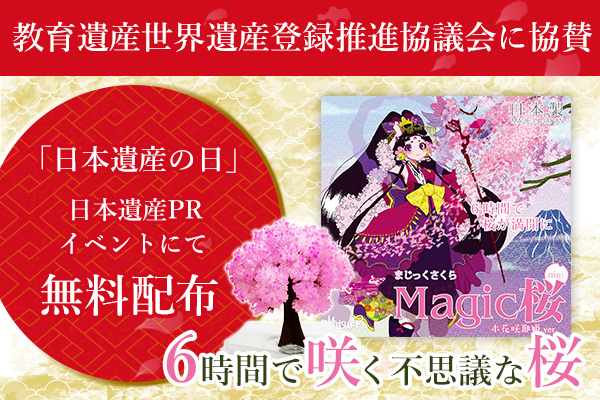 「日本遺産の日」日本遺産PRイベントにて教育遺産世界遺産登録推進協議会に協賛 イベントブースにてマジック桜 Magic桜ミニ 木花咲耶姫ver.を無料配布