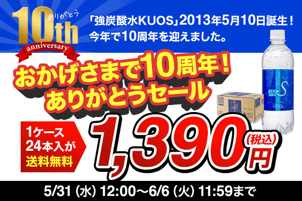 強炭酸水KUOS 10周年記念企画開催! 『おかげさまで10周年!ありがとうセール』5月31日スタート
