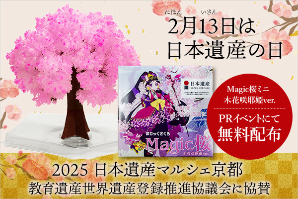 株式会社OTOGINO(オトギノ:代表取締役社長 鬼武公洋 本社 大分県日田市北友田 2 丁目 2123 番地 1)は2025年2月15日(土)~2月16日(日)に京都市お東さん広場(東本願寺前市民緑地)、京都市下京区常葉町他で開かれる日本遺産の日PRイベント「2025日本遺産マルシェ京都」に出展する教育遺産世界遺産登録推進協議会に、株式会社OTOGINOオリジナル製品である、6時間で咲く不思議な桜『Magic桜ミニ木花咲耶姫ver.』を提供します。