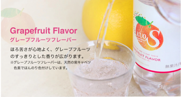 原料は、水・炭酸ガス・グレープフルーツの香りと色素のみを使用し、グレープフルーツの果汁感と爽やかさが口いっぱいに広がり、無糖とは思えない程のおいしい仕上がりです。