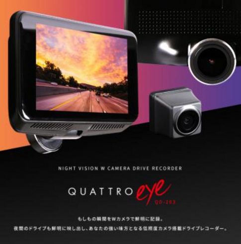 車載機器専門店のECサイト【液晶王国】を運営している株式会社 OTOGINO(オトギノ:代表取締役社長 鬼武公洋 本社 大分県日田市北友田 2 丁目 2123 番地 1)は、QUATTRO eye QD-203ドライブレコーダー バックカメラセットを販売しました。これから、運転の機会が増える年末・年始の夜間のドライブでもダブルカメラでもしもの瞬間をより鮮明に記録します。