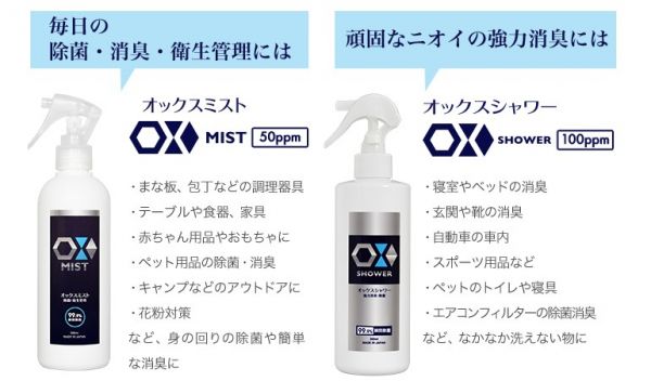 除菌・消臭!次世代型の除菌消臭剤 『OX(オックス)シリーズ』
