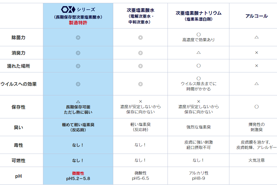 長期保存型次亜塩素酸水の除菌スプレー、OXミストとOXシャワーの発売に伴い、オフィシャルサイトが2019年10月1日にOPENしましたOXシリーズとは、これまでの除菌・消臭スプレーの問題を全て解決した、安全且つ最新の製品です。オフィシャルサイトではOXシリーズの様々な特徴や実験結果、使い方などを詳しく紹介しています。