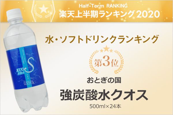 【楽天上半期ランキング2020】『水・ソフトドリンクジャンル』47万7千点以上の商品の中から、第3位!強炭酸水クオス