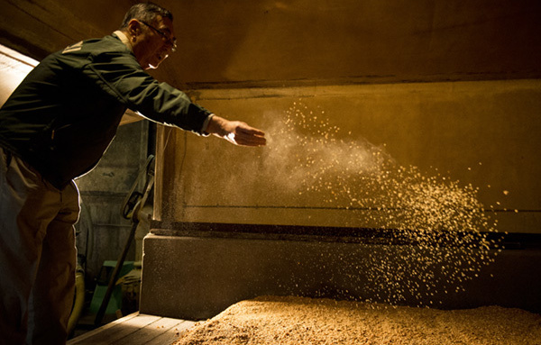 1.コオロギ粉を発酵段階から仕込み、約1年間発酵・熟成