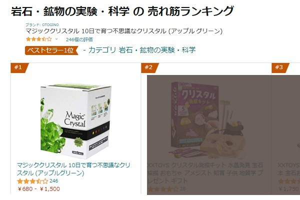 10日で育つ不思議なマジッククリスタル Amazon売れ筋ランキング「岩石・鉱物の実験・科学」で1位ランキング