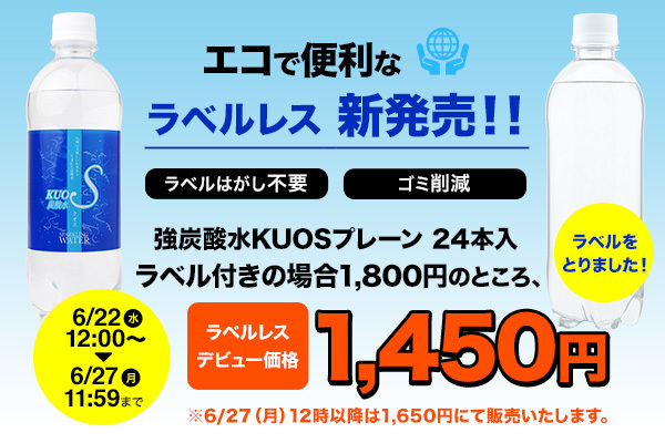 【ラベルレス】強炭酸水KUOS 1ケース(500ml×24本)1,650円(税込)