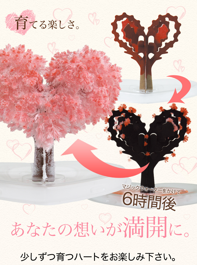 6時間でモコモコ成長し、ふわふわのハートが完成します。