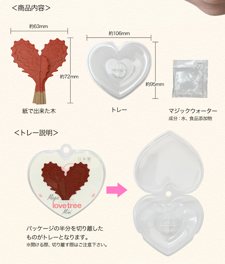 | 付属品・素材 | 本体:紙 トレイ:プラスチック マジックウォーター:水、食品添加物 |