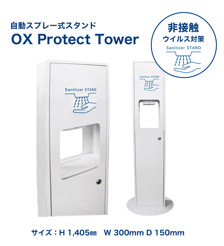 | 定価(税別) | 【スタートパック】 255,000円(税込280,500円) ・oxプロテクトタワー本体×1 ・手指消毒用アルコール75% 25リットル(※1L×5 5セット) |